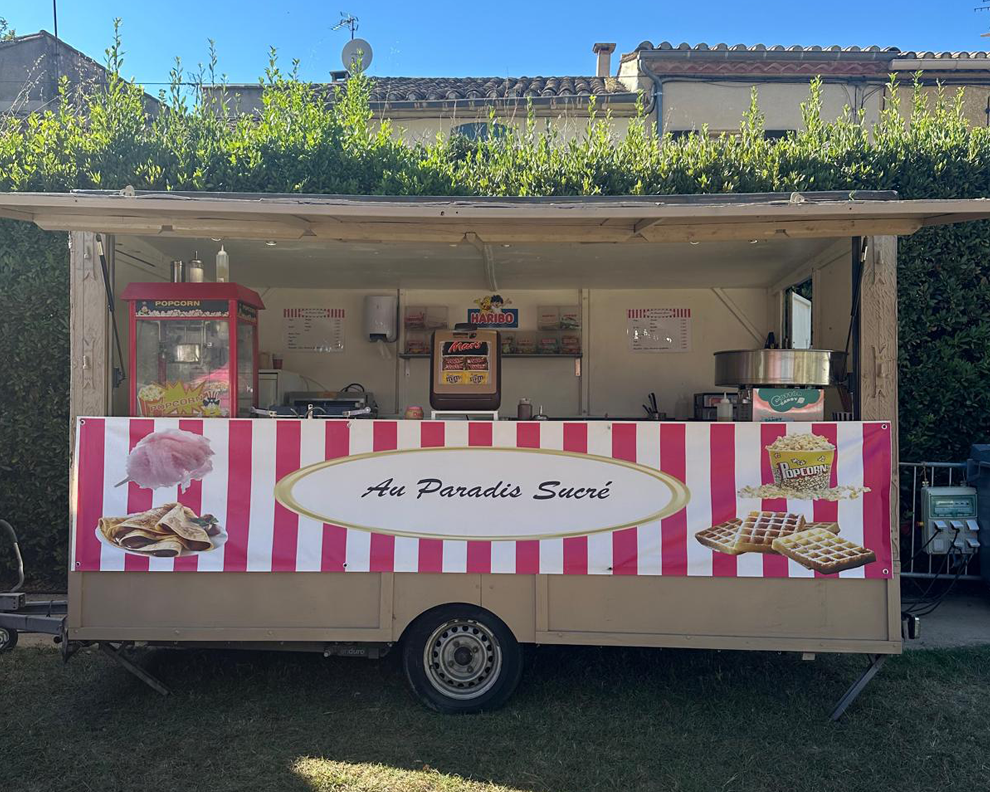 Régalez petits et grands avec notre stand à confiseries, idéal pour apporter une ambiance festive et sucrée à vos événements ! Crêpes, gaufres, barbe à papa, pop-corn, pommes d’amour, bonbons, marrons chauds… Une véritable invitation à la gourmandise pour fêtes, mariages, anniversaires et événements d’entreprise.